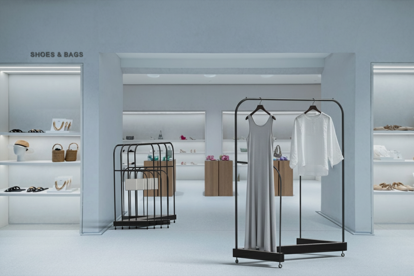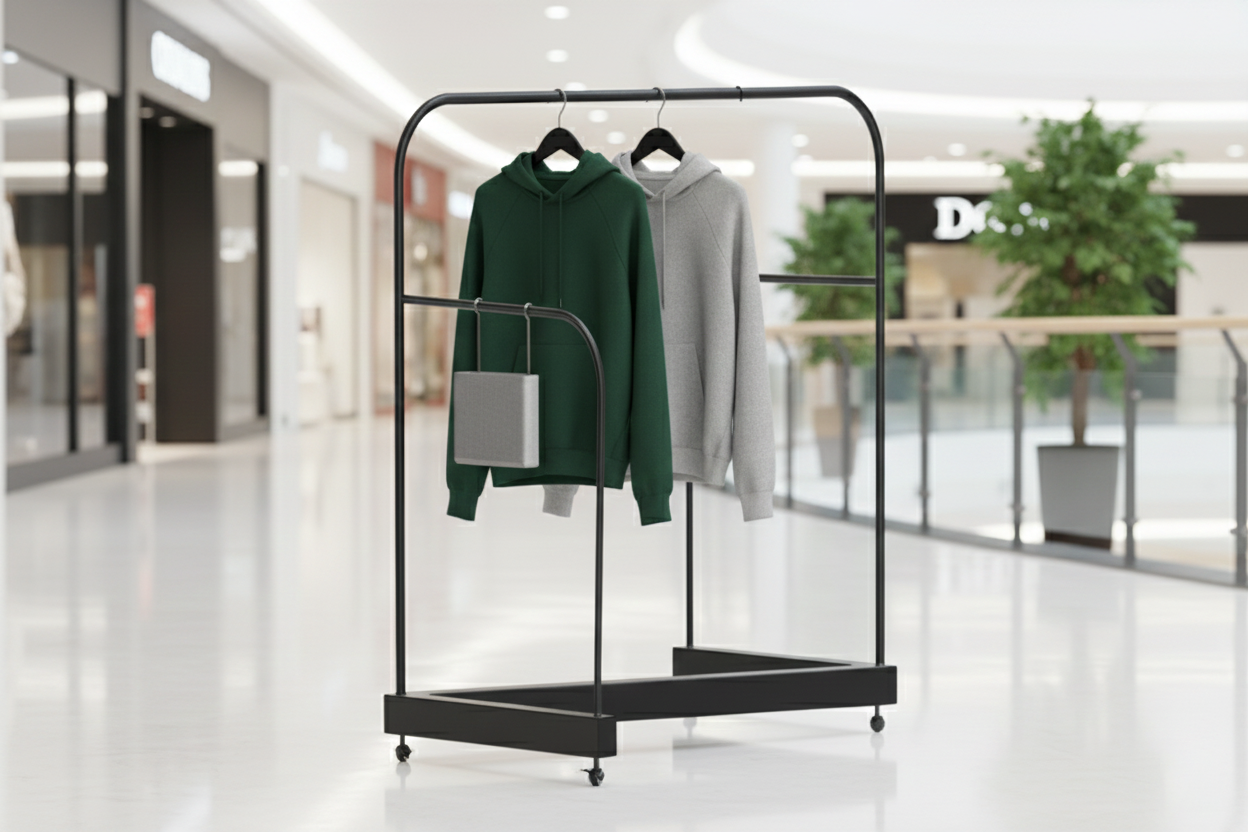 It’s hard to select new articles and find sizes when both the shopper’s hands are occupied holding clothes.